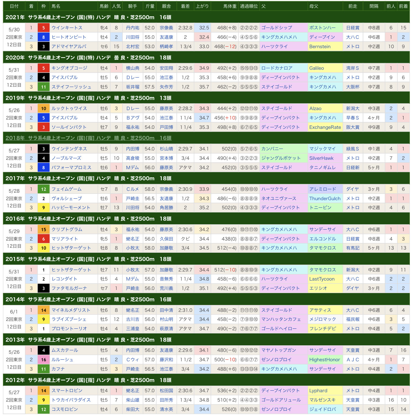 前走は皐月賞、京都新聞杯、青葉賞のほぼ3択で、皐月賞馬が飛ぶことは滅多にないもん