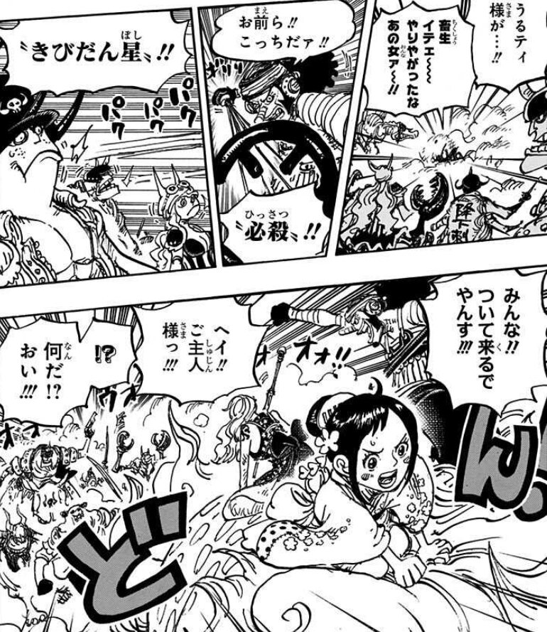 310話のセンターカラーの和装のルフィ、ロビン、ウソップ、桃色の龍(モモ)はワノ国をクライマックスを締めるメンバーだって考察は期待してたけど違うかな