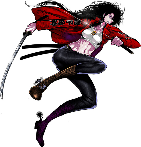 持ってる武器が十手ぽくも見えるので、女の子だけど岡っ引きとか治安維持組織の人