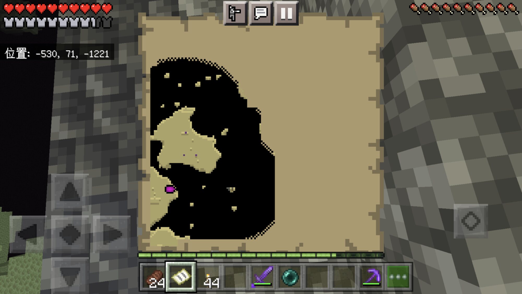 丸石2スタックとハーフブロック2スタック、そして何よりマップをロストしたのはかなりショックだがなあっ