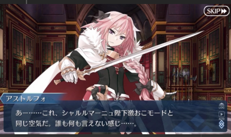例えば「ローランがすぐ全裸になりたがるから困る」「アストルフォがすぐ暴走して困る」くらいだったら「ごめん!よく言い聞かせておくから」で済むんだけど、「ローランとか全裸しか特徴ないよね」「アストルフォってただのアホじゃん」まで行くと「お前にあいつらの何が分かるんだ?」って静かにキレるイメージがある