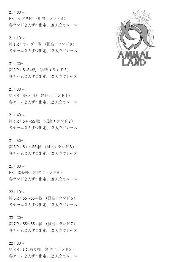 遅くなりましたがランド4の出走予定表を鍵付き掲示板の方に貼らせていただきました