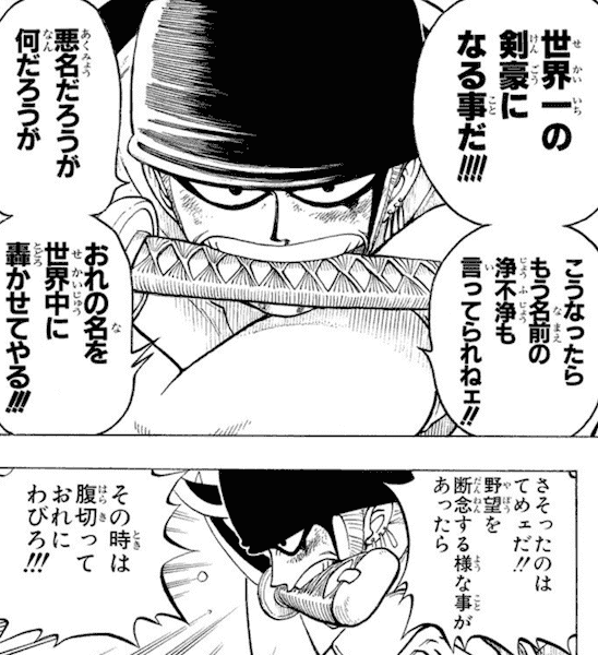 そもそもゾロは海賊っていう悪名で名前を上げる気はなかった