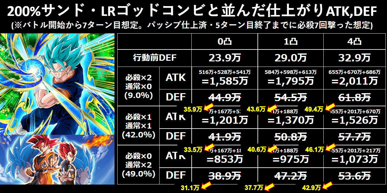 170%サンド、全時空染め、伝説の力・超激戦・臨戦・冷戦な判断込みでATK460万、行動後DEF42万ぐらいはあるな