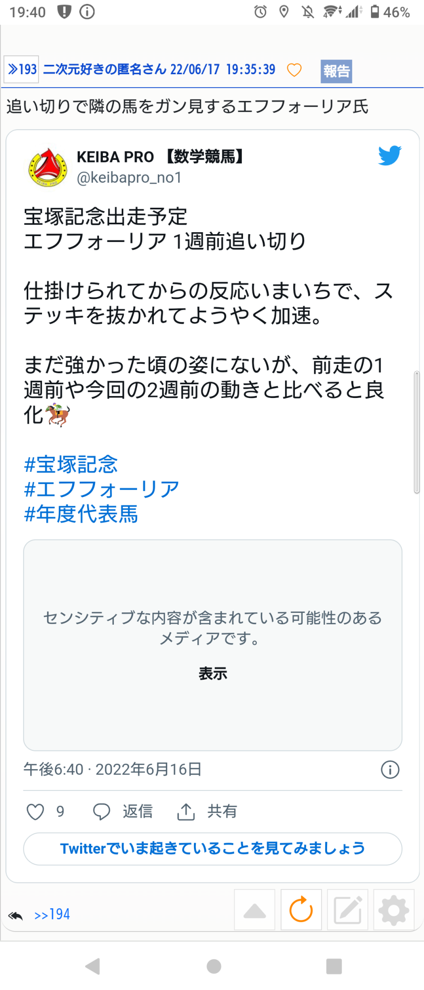 <a href="https://twitter.com/hashtag/年度代表馬" target="_blank">#年度代表馬</a> — KEIBA PRO 【数学競馬】 (keibapro_no1) 2022年06月16日 - 194二次元好きの匿名さん22/06/17(金) 19:36:25