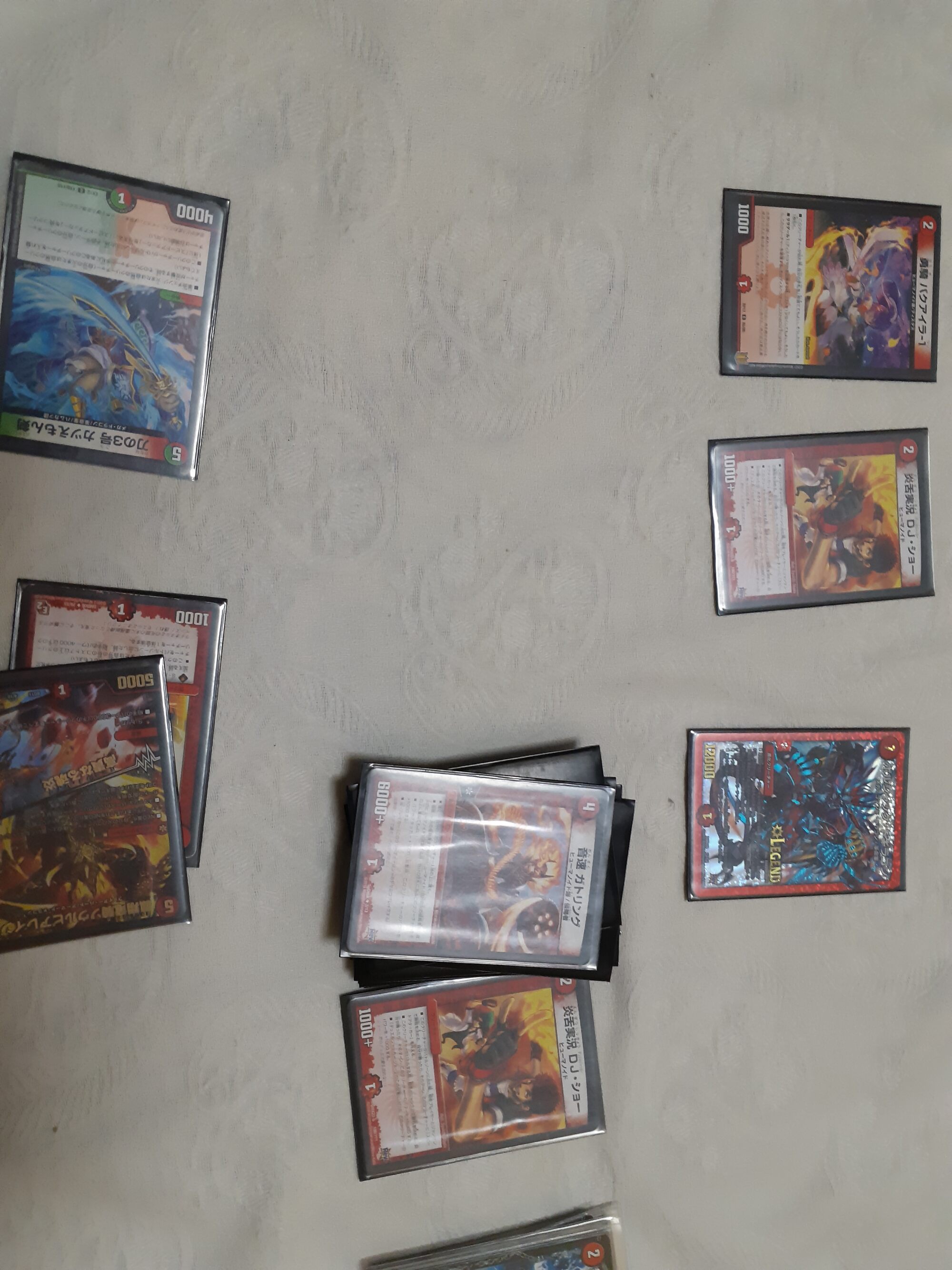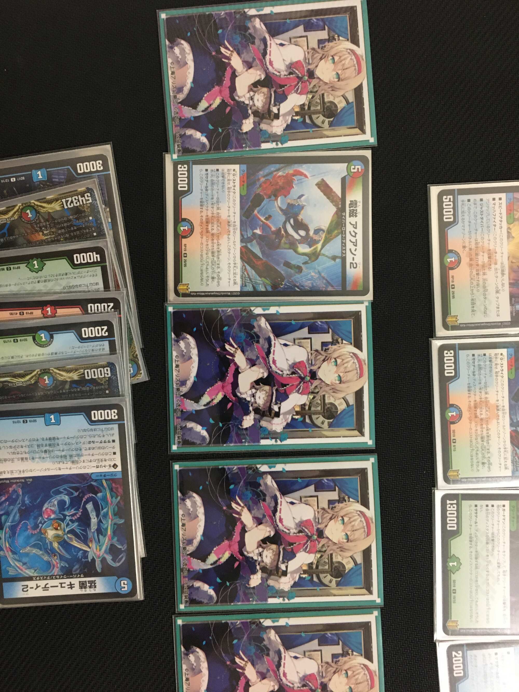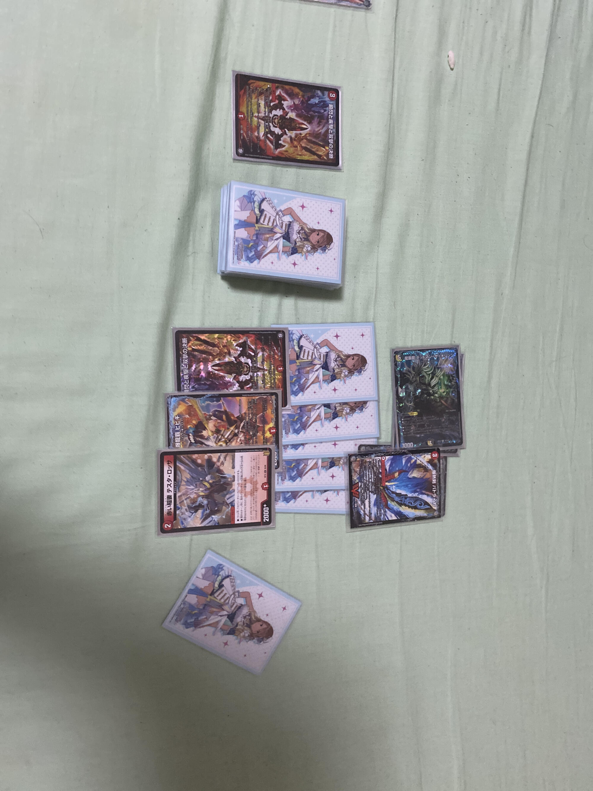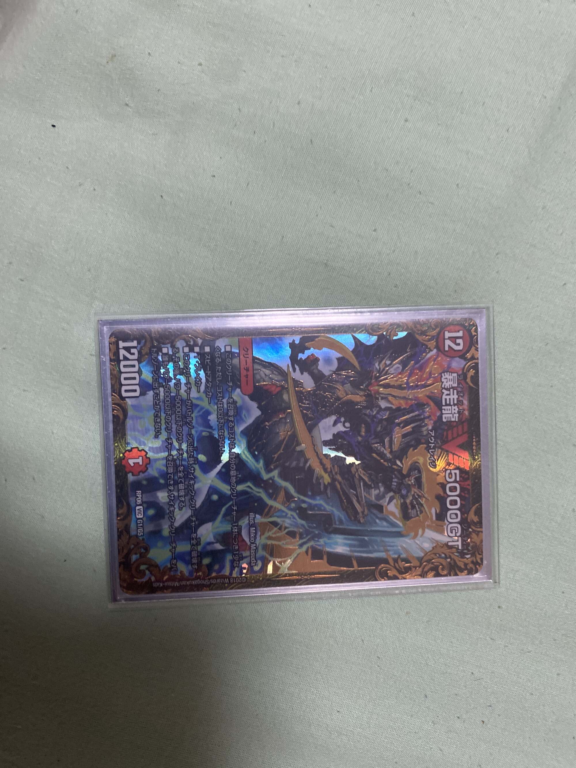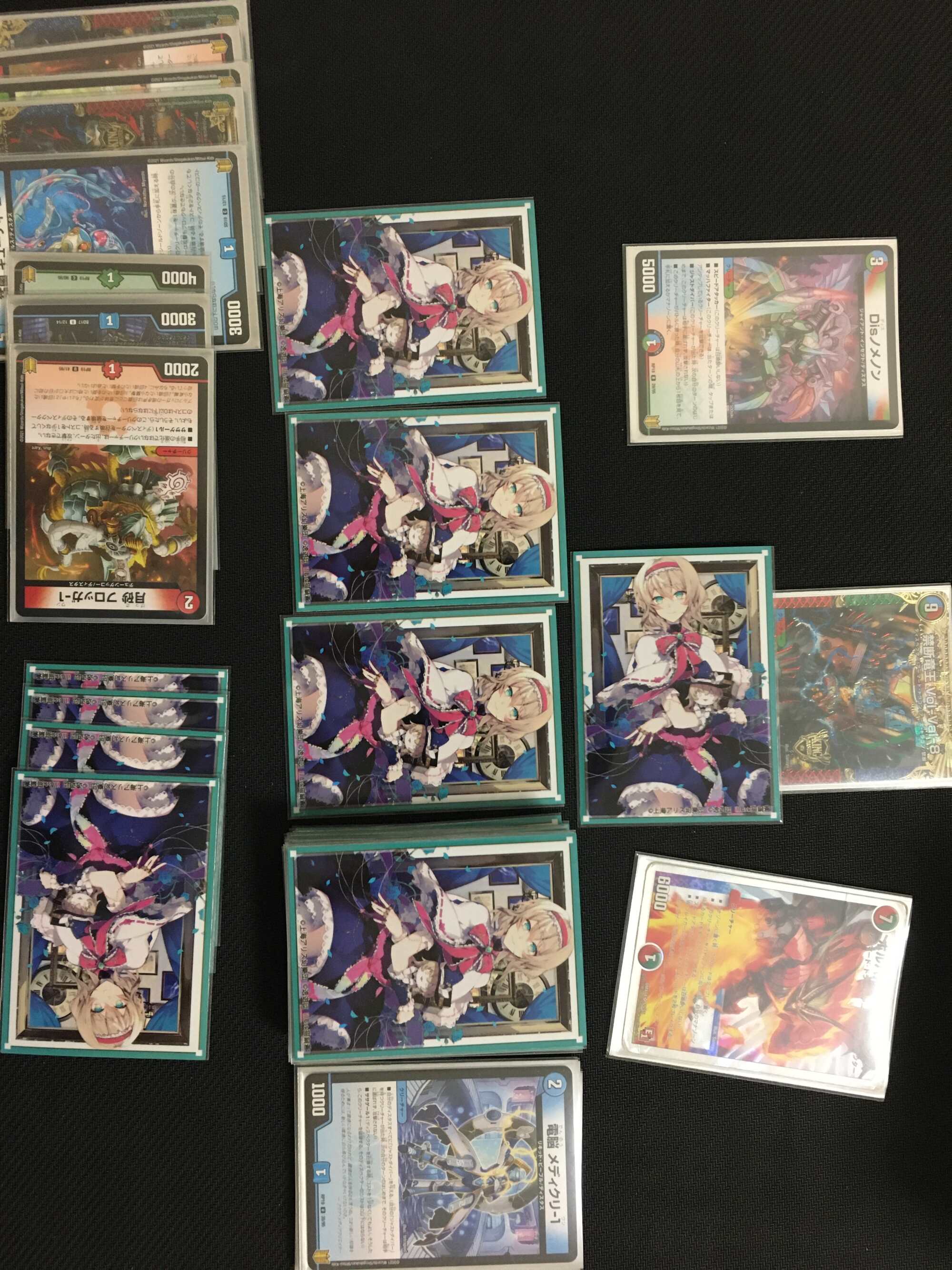 ドロー、最終龍はロージアマナにお当て四マナ払って爆竜覇ヒビキ召喚、バトライバ装備、ハヤブサリュウを進化元にした方のボルシャックドギラゴンで攻撃時革命チェンジ、蒼き団長ドギラゴン剣を出します、効果でその子供、可憐につきをだします、左端からトリプルブレイクです