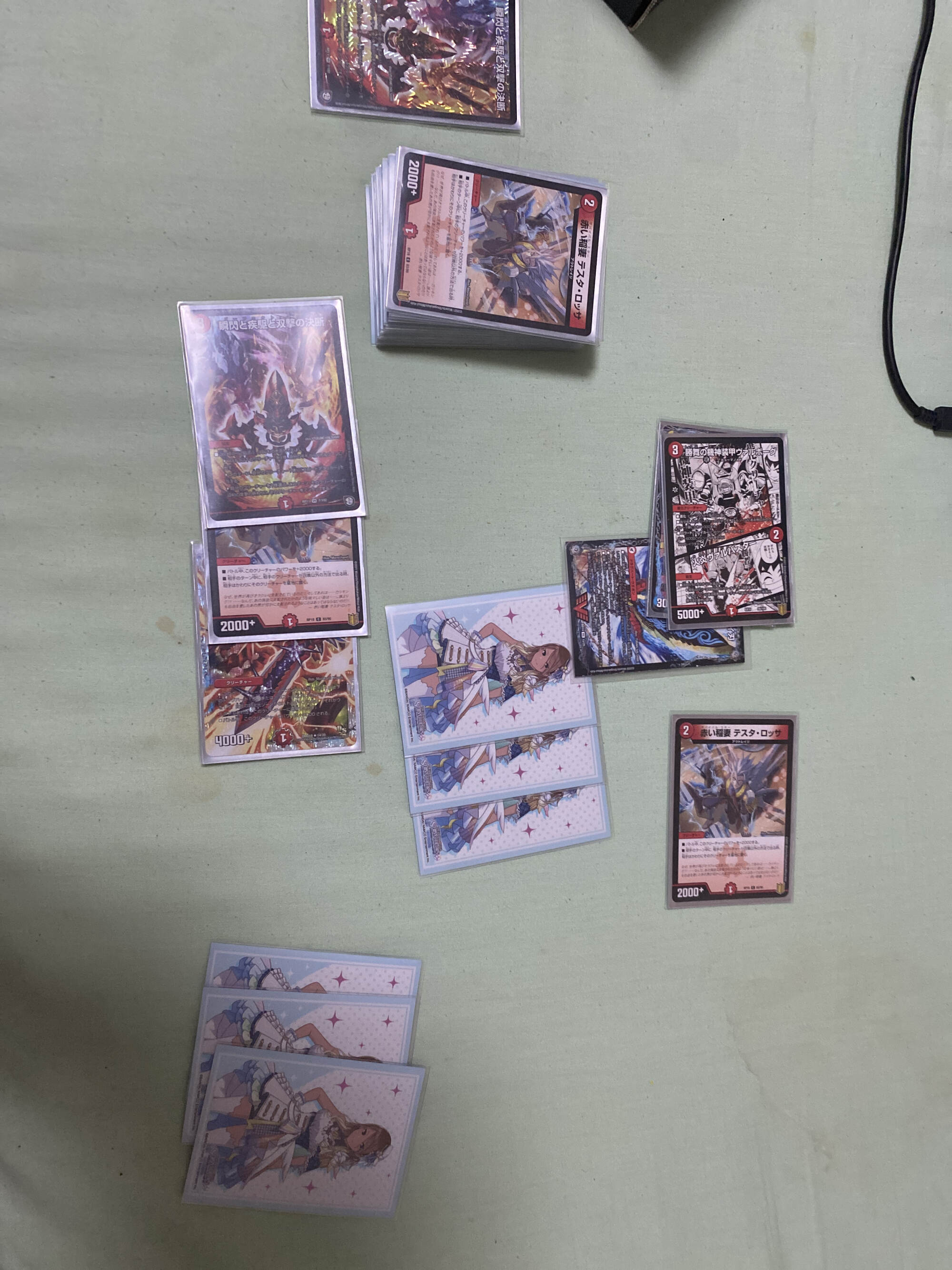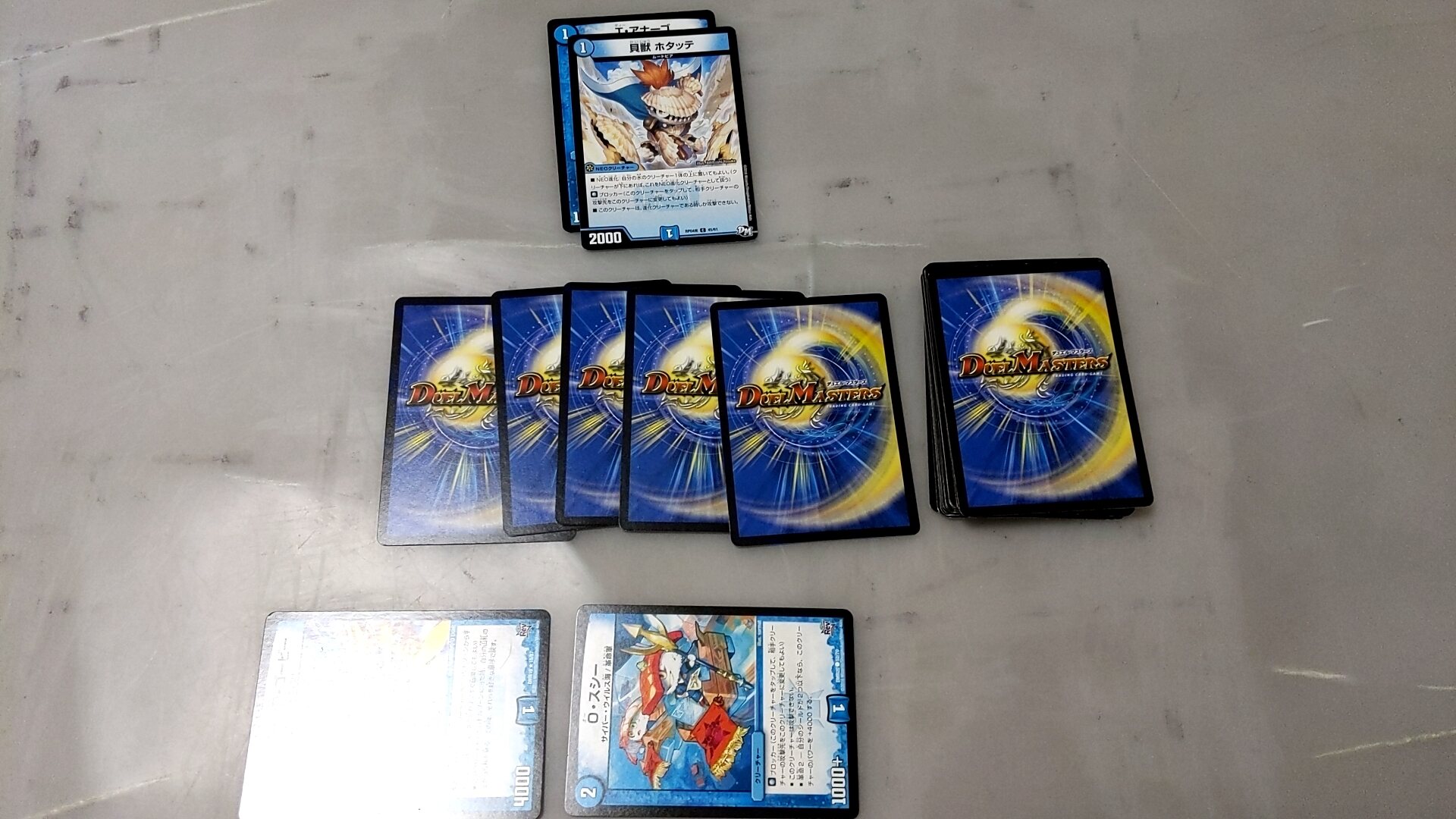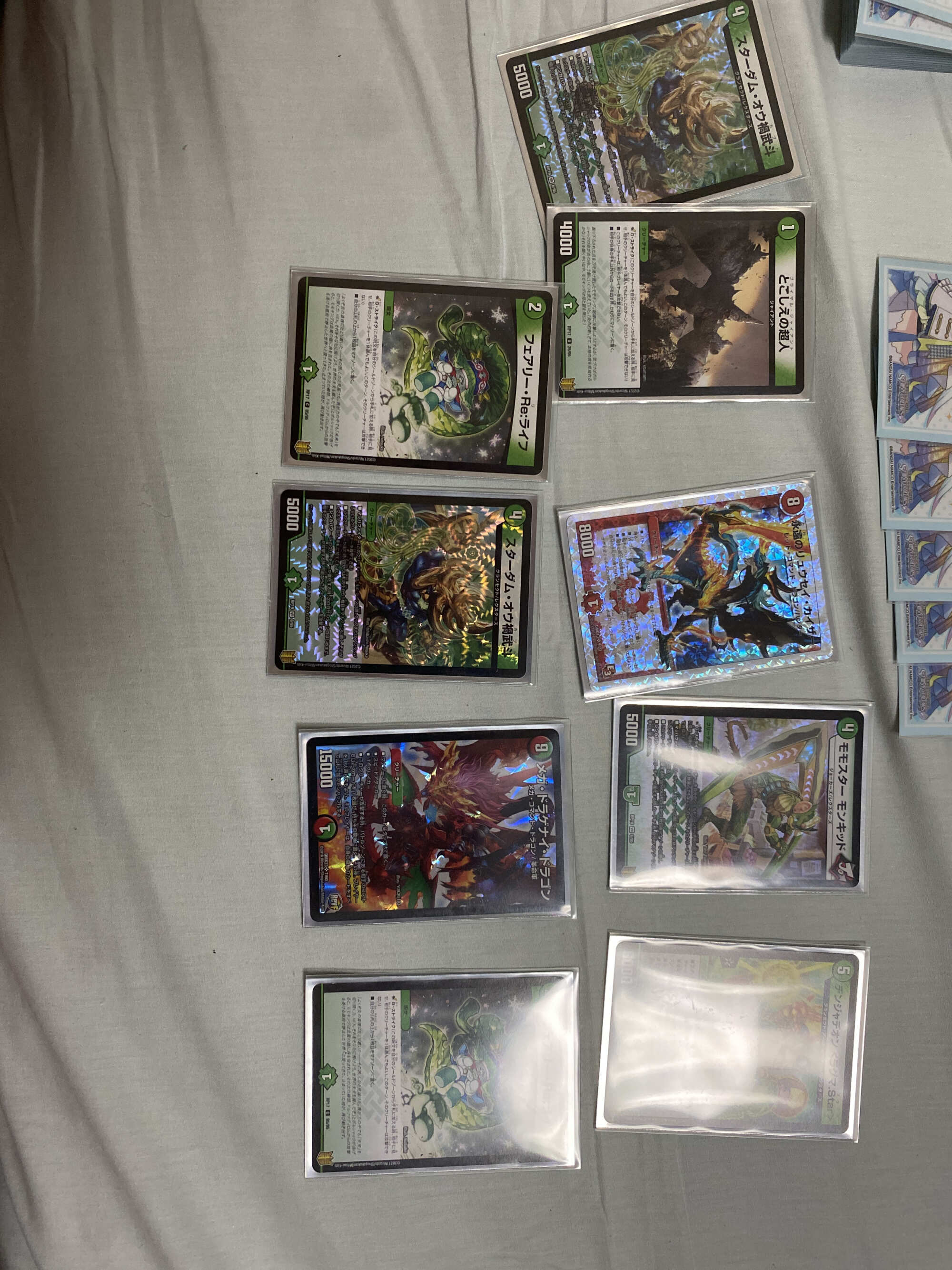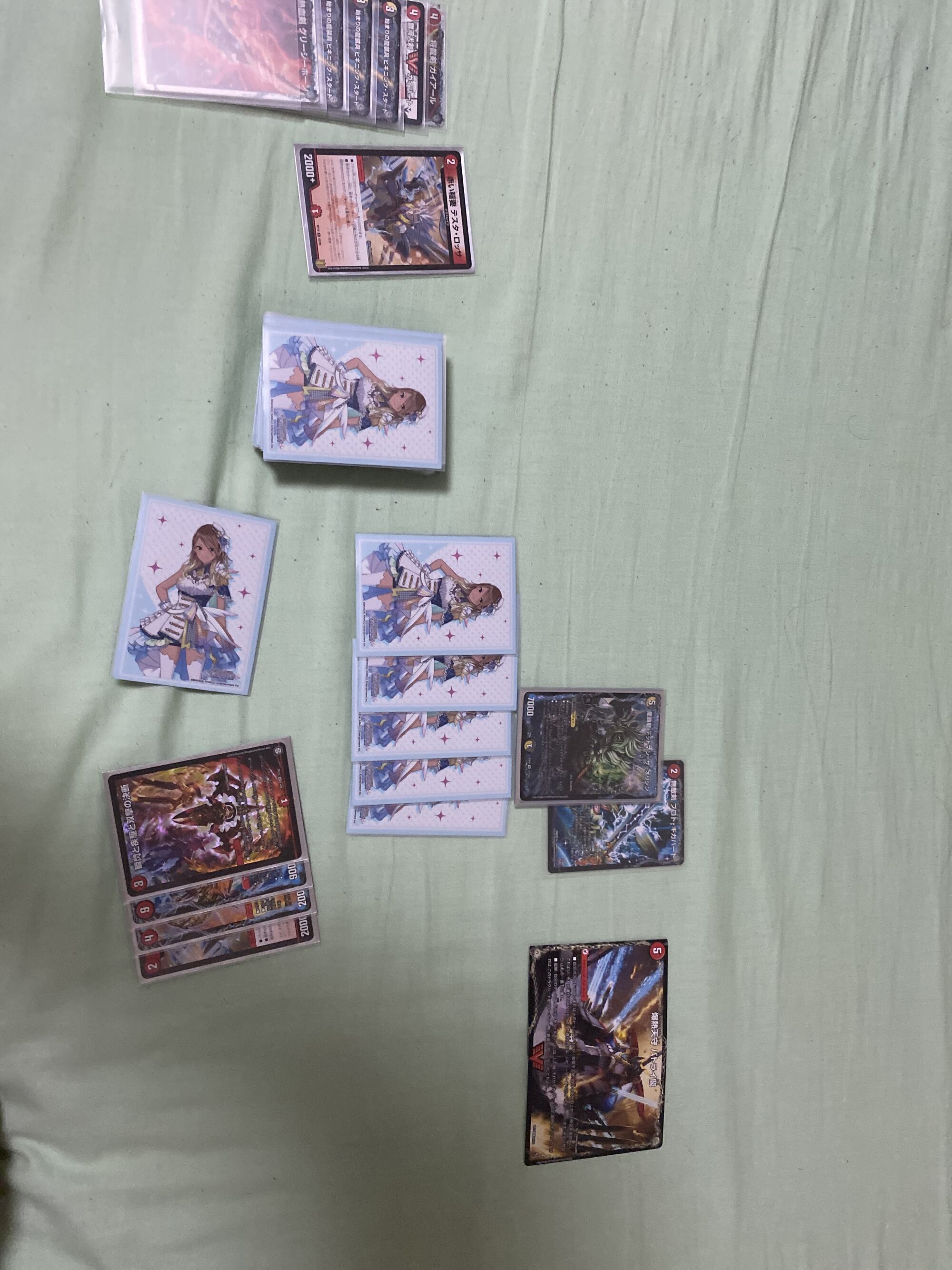 ドロー、最終龍はロージアマナにお当て四マナ払って爆竜覇ヒビキ召喚、バトライバ装備、ハヤブサリュウを進化元にした方のボルシャックドギラゴンで攻撃時革命チェンジ、蒼き団長ドギラゴン剣を出します、効果でその子供、可憐につきをだします、左端からトリプルブレイクです