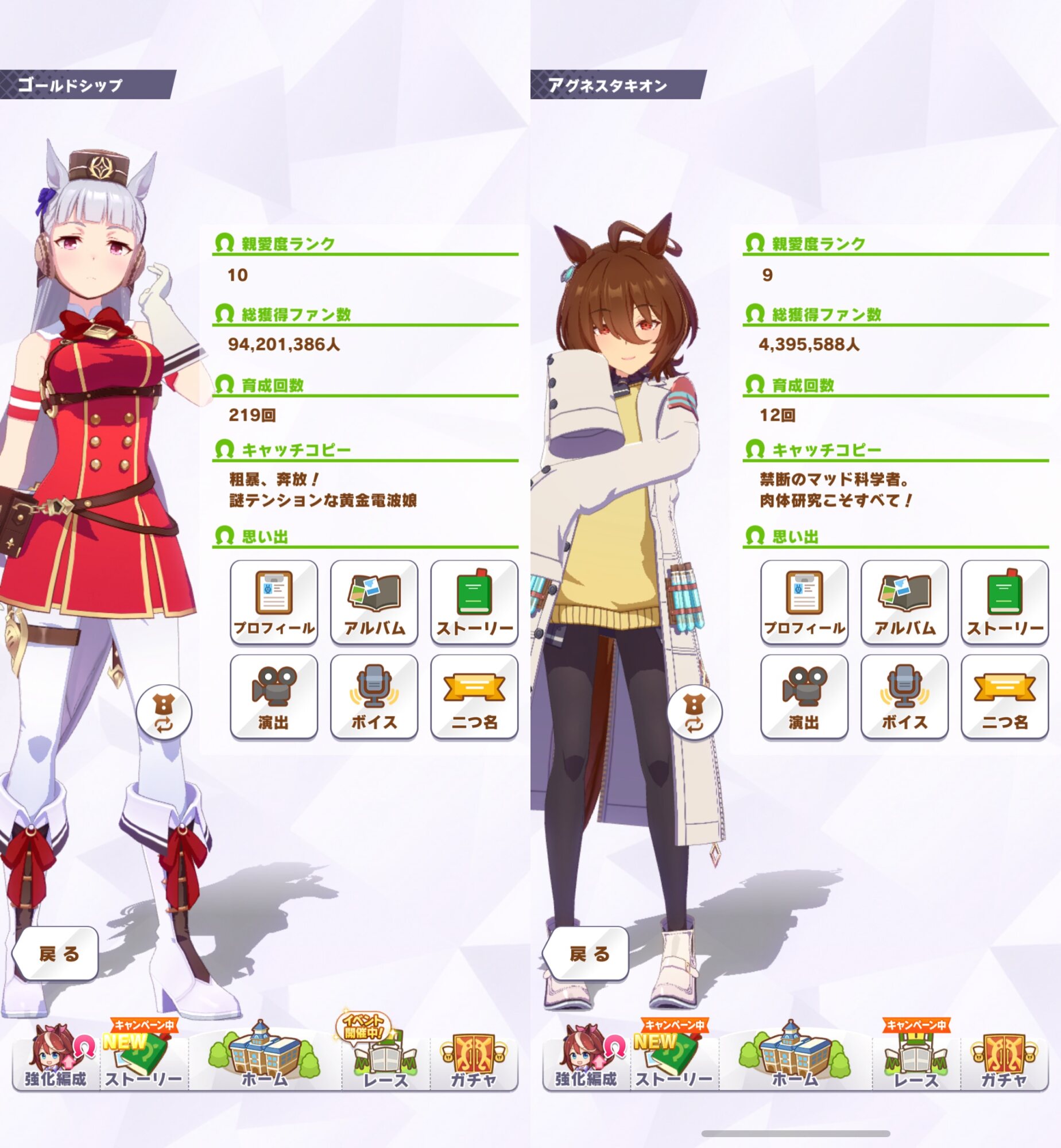 昔やってたときはタキオンとかウォッカとかそのへん育ててたのん