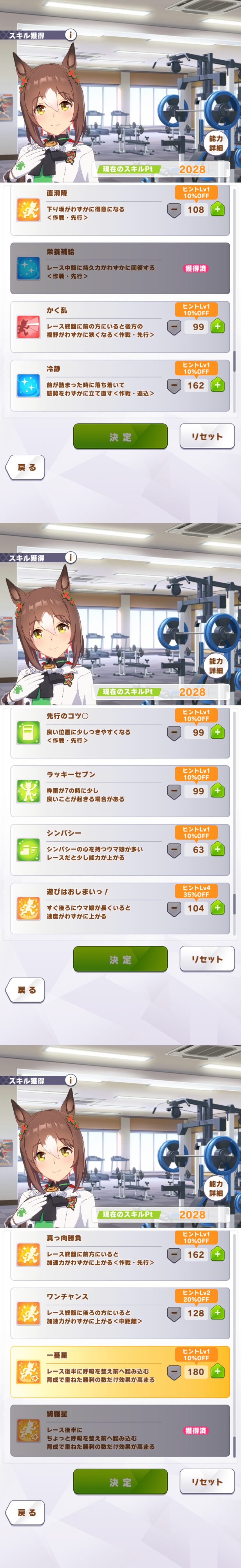 ではシミュレーション通りになるかどうかスキルを取っていきます