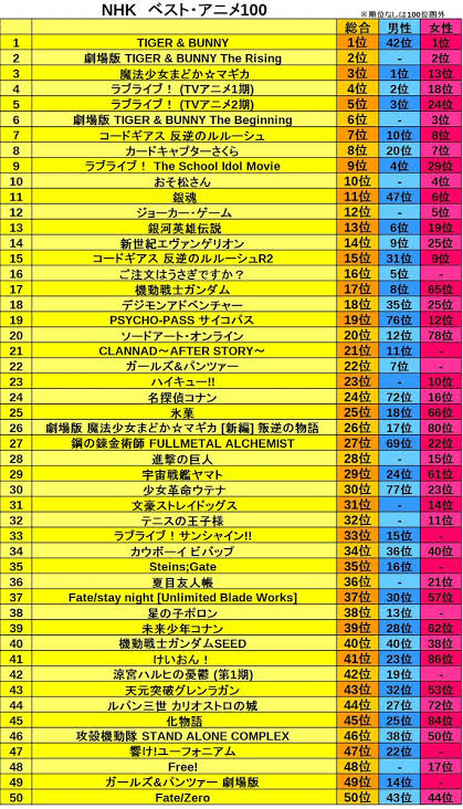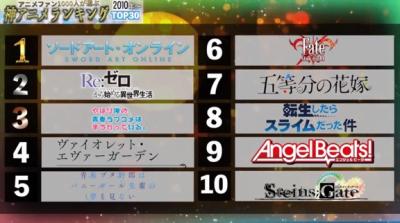 多分ここで文句言ってるやつらは自分が好きなアニメが一位だったら文句言わんだろうなぁ