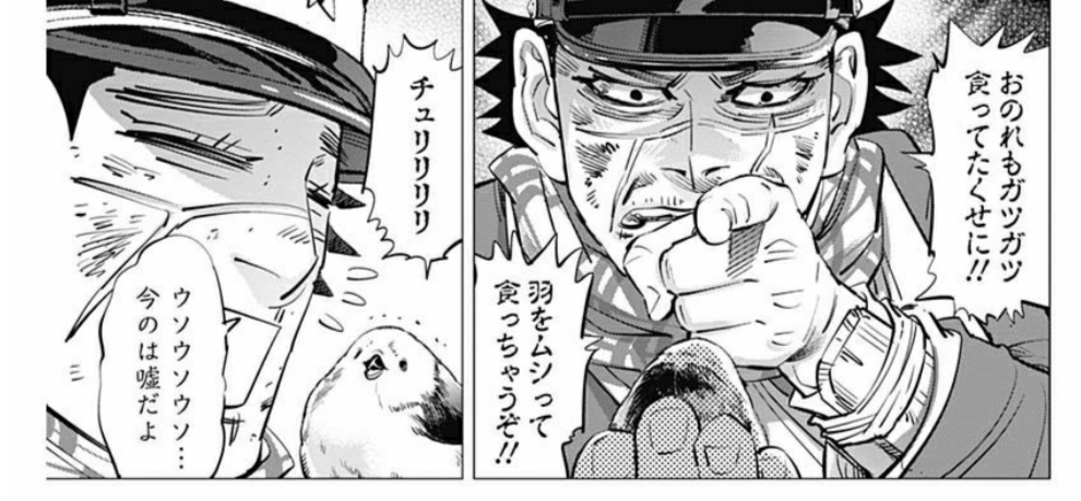 <a href="https://twitter.com/hashtag/ゴールデンカムイ" target="_blank">#ゴールデンカムイ</a> — ぼく、シマエナガ。 (daily_simaenaga) 2020年01月30日このお話に教訓があるとしたら周りをよく見ないまま欲をかくとろくな事がないって事かな……