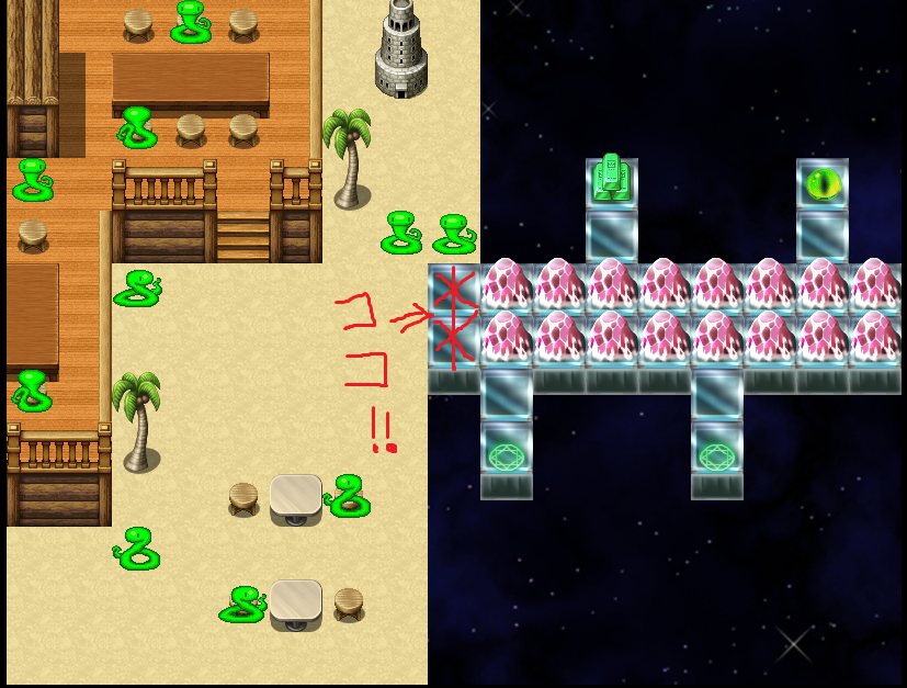 別荘に行ってから巨塔にいけるのは赤扉経由後のみって言うのは今と変わらないじゃんって、書き込んでから気付いたよ
