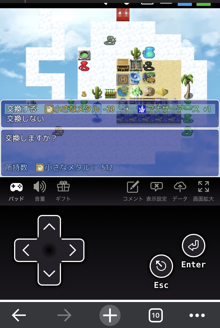 ヘビ貿易 - ゲームアツマール砂漠で水などを売りさばき お金を稼ぐゲームです。推理ゲーの方も、なるべく早めに完成させます。