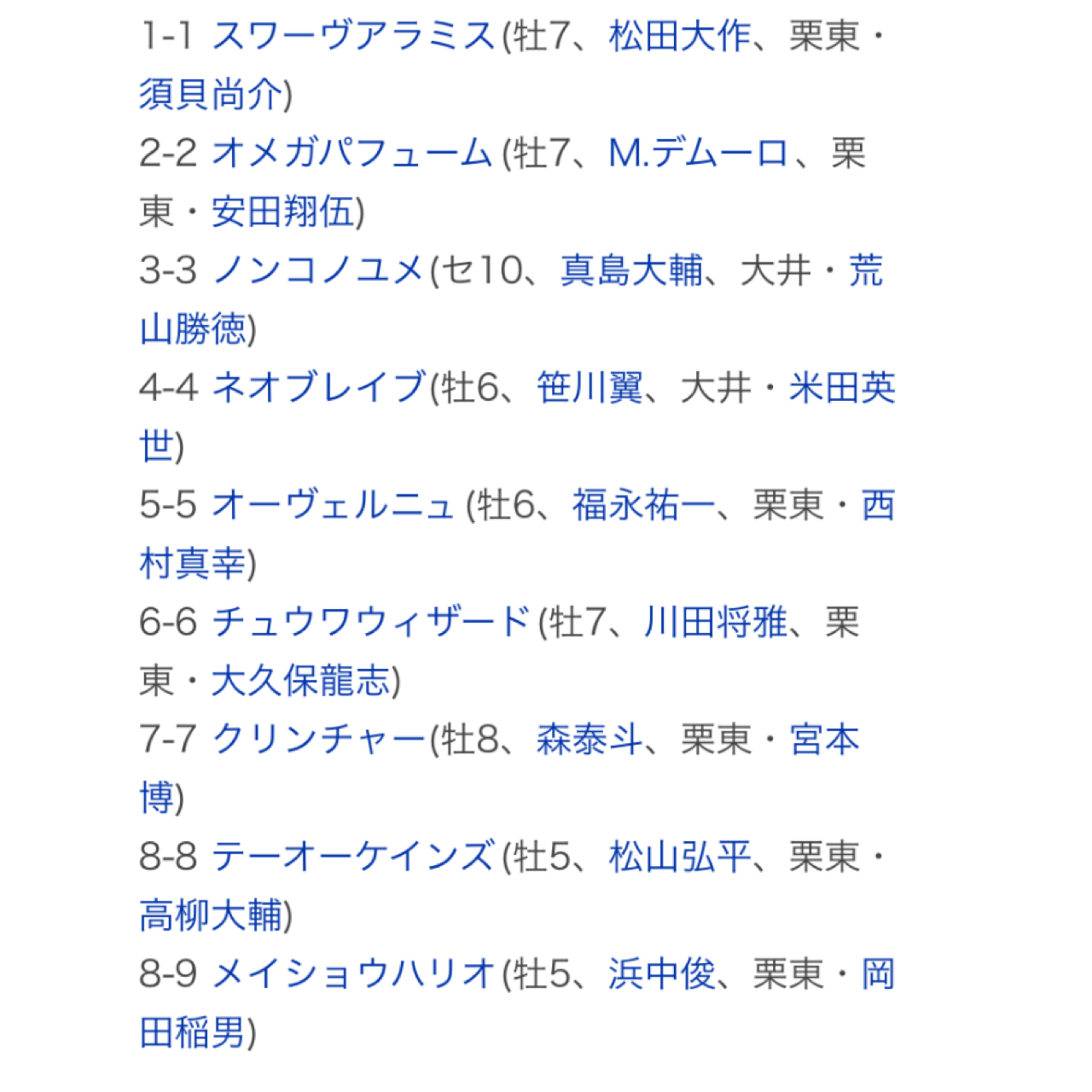 なんか見たことある名前の馬しかいない