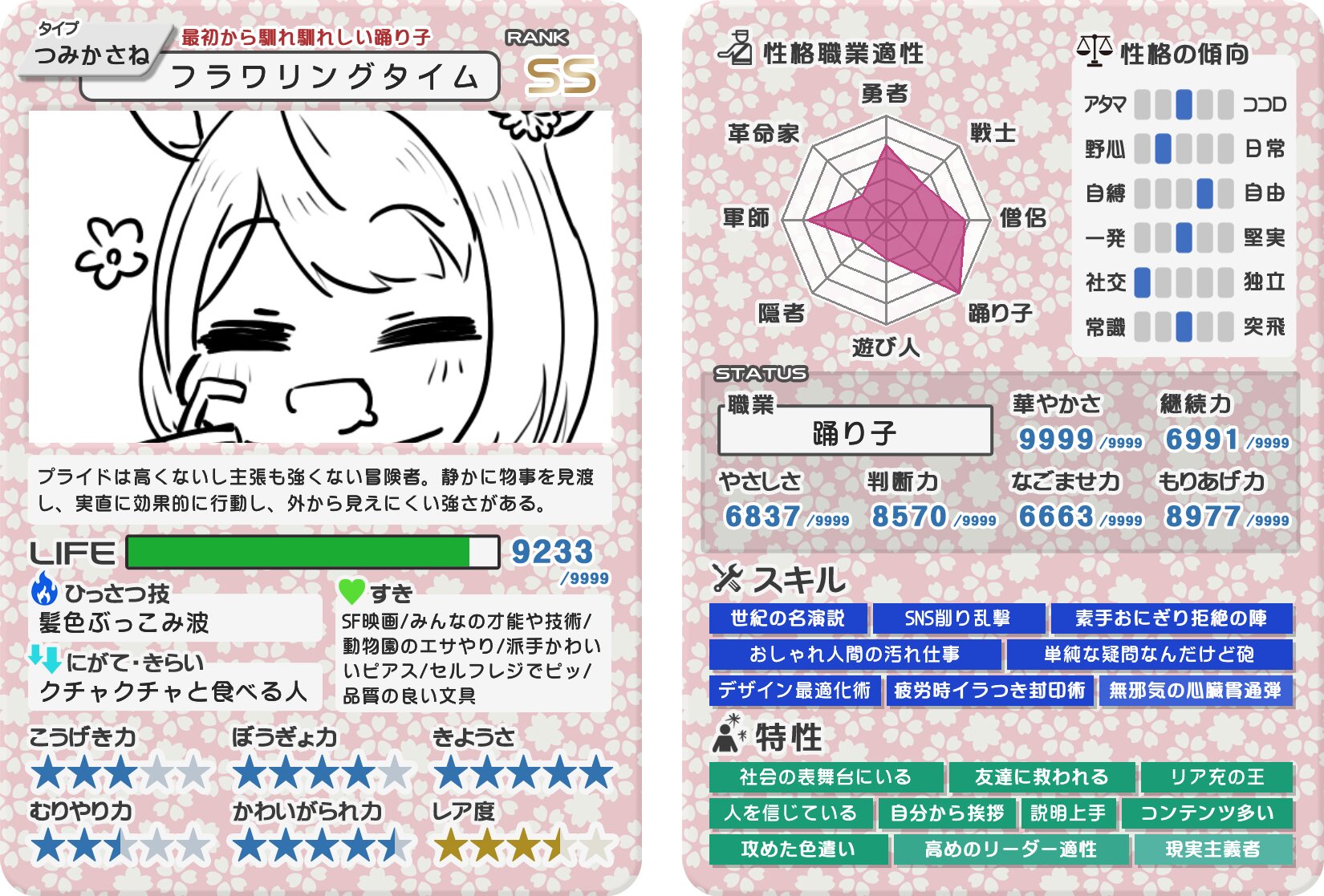 かわいがられ力高い上に攻撃力低くて回避も防御も甘いあたり小動物感がすごい