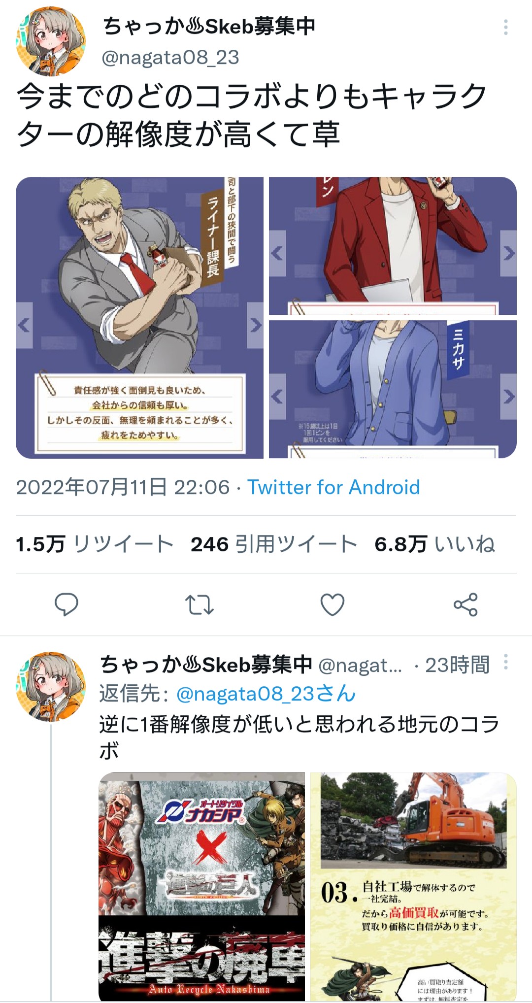 <a href="https://twitter.com/hashtag/進撃の巨人" target="_blank">#進撃の巨人</a> — たつくん(えんぴつの会) (tatuyaozaki1028) 2022年06月28日 - 3二次元好きの匿名さん22/06/29(水) 23:30:53