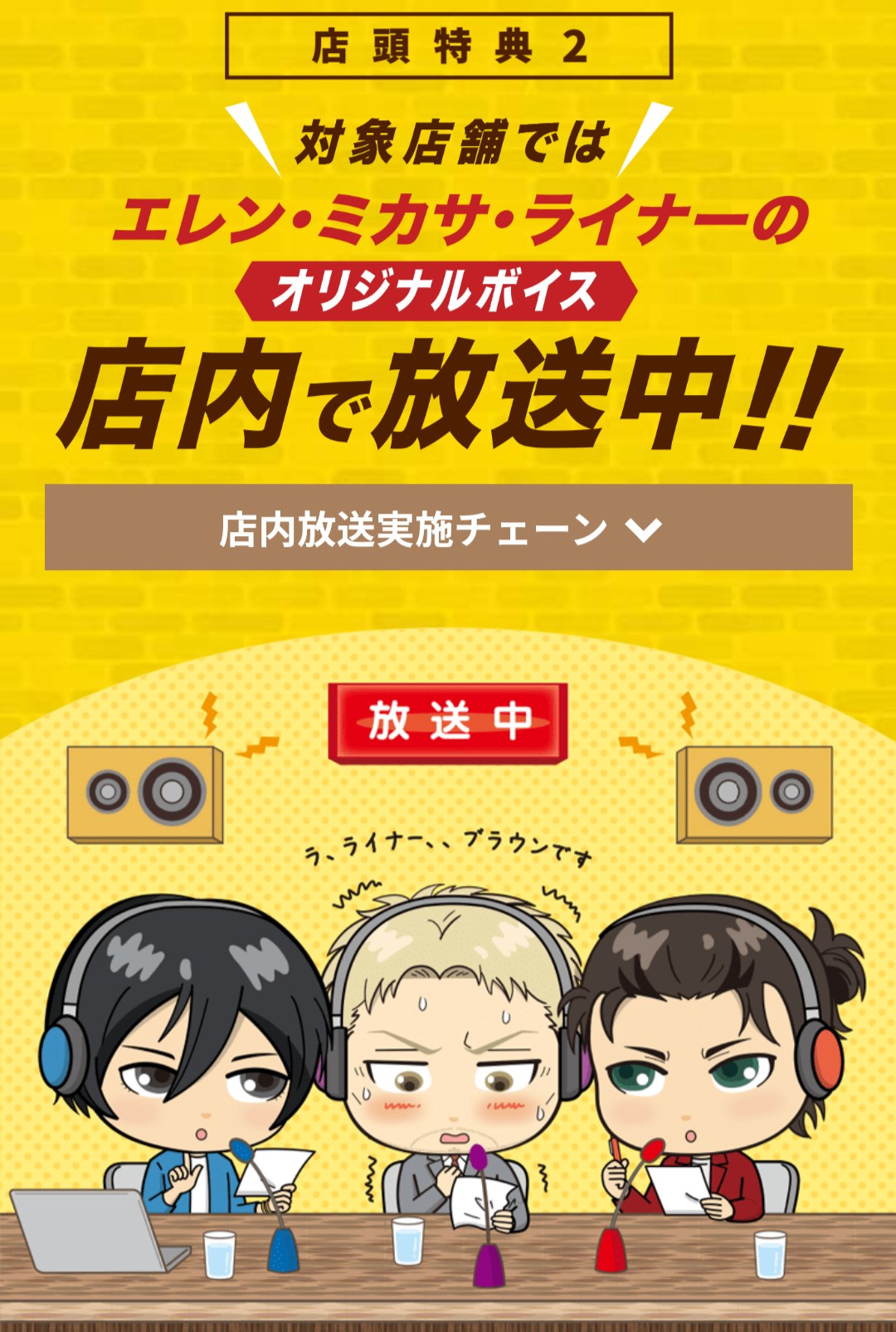 店内放送はまだ聞いてないけど。パネルのライナーの目がいつ見てもガン決まってるなって
