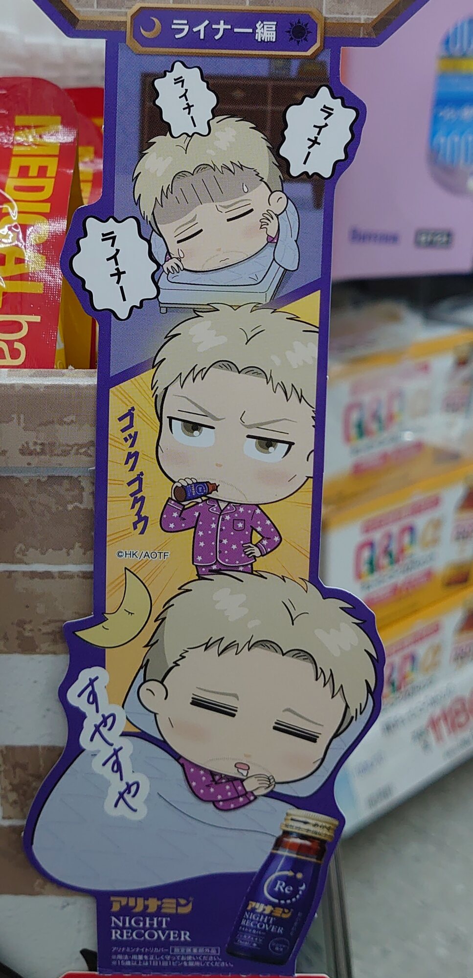 みんなかわいいっ💕 ナイトリカバー買っときました😊 <a href="https://twitter.com/hashtag/アリナミン" target="_blank">#アリナミン</a> <a href="https://twitter.com/hashtag/進撃の巨人" target="_blank">#進撃の巨人</a> <a href="https://twitter.com/hashtag/shingeki" target="_blank">#shingeki</a> — チョコシェイク@進撃 (teawithheicho) 2022年06月25日近隣のスーパーとかじゃ全然見かけないけどどこでやってんだろうな