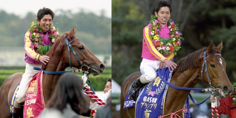 有馬後のインタビューで勝利者とは思えない顔で僕は…馬が…馬が…としか言えず、自分は諦めたのにオペラオーは諦めず抜け出したことに情けなくてゴーグルを涙で外せずに検量室でオペラオーのボロボロの脚を見たあとのリュージのご尊顔です