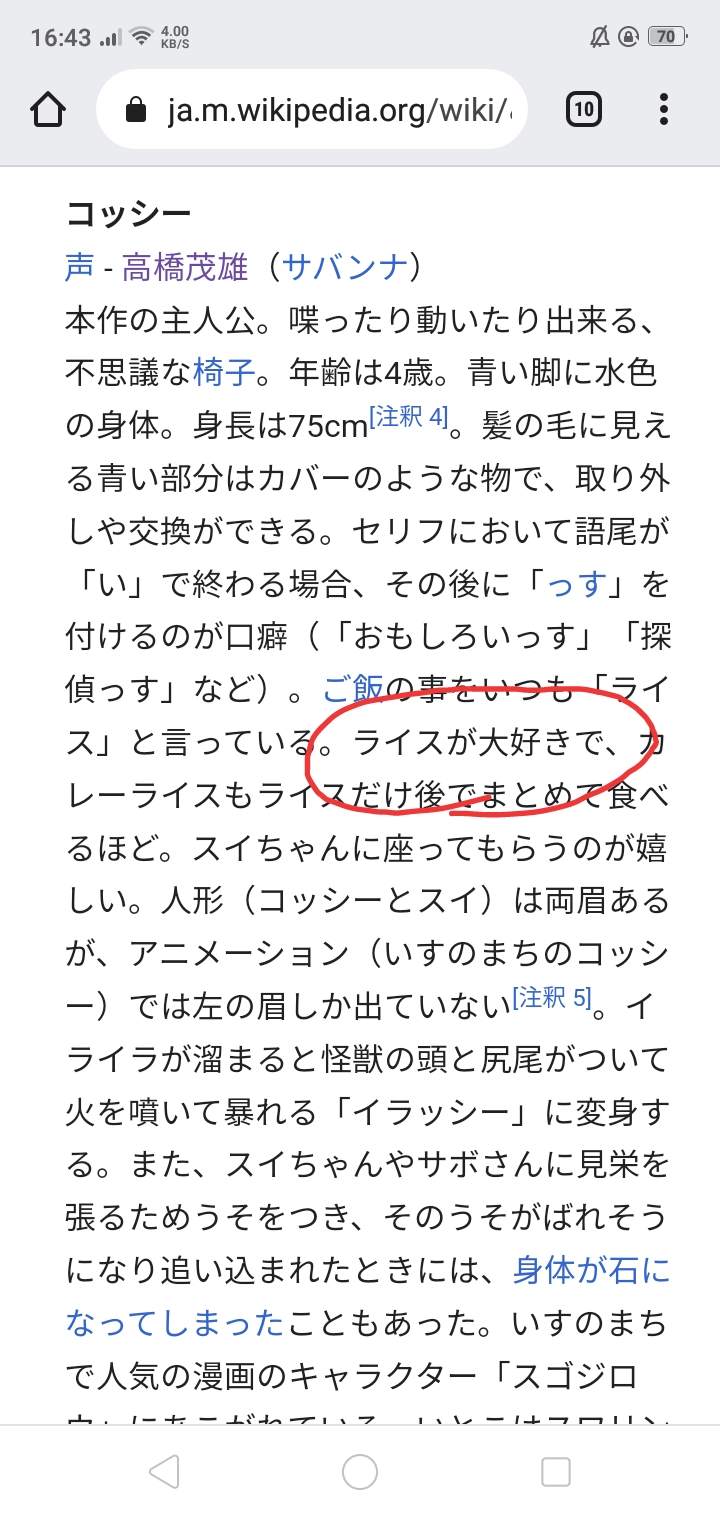 コッシーの好物がライス、つまりご飯なんだ。