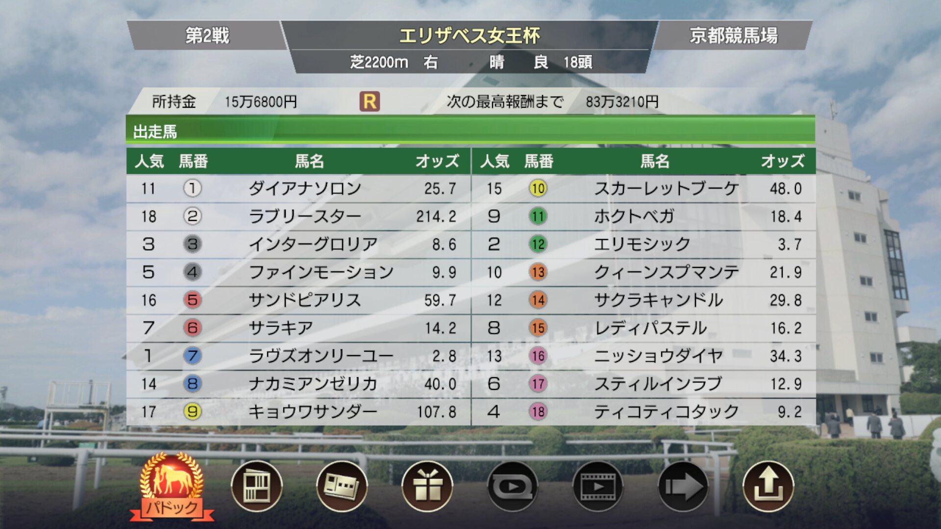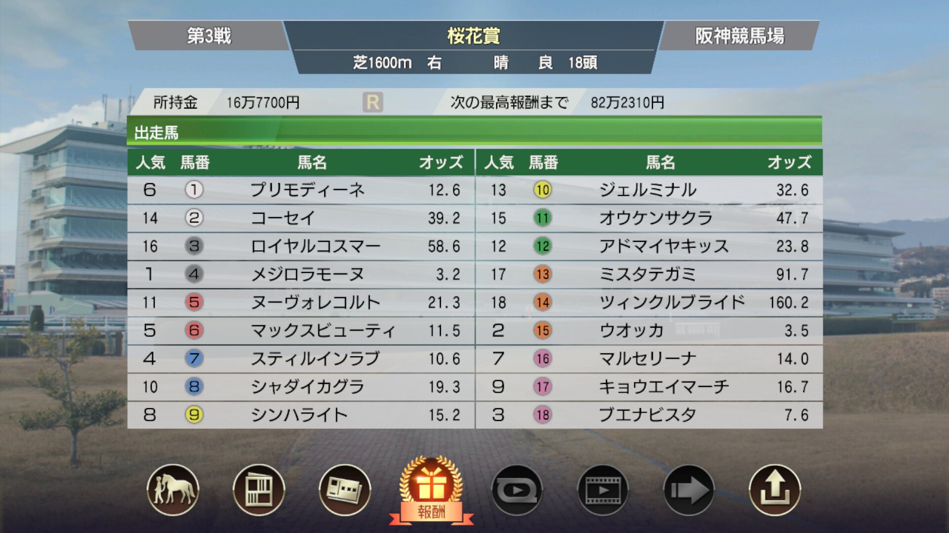 レース選べるようにしたり、初期資金増やしたりやること多いな