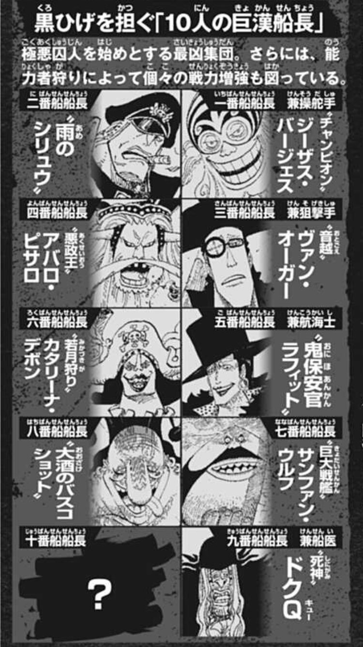 てっきり黒ひげもいれて10人の船長だよ~~ってミスリードを誘うために10番船長が存在すること自体明かさないと思ってた