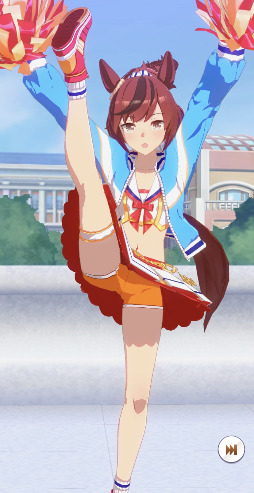 あのヘソ出しだけで恥ずかしがってるネイチャがこんなのを着てポンポン振り回してるっていう事実がえっちだよね