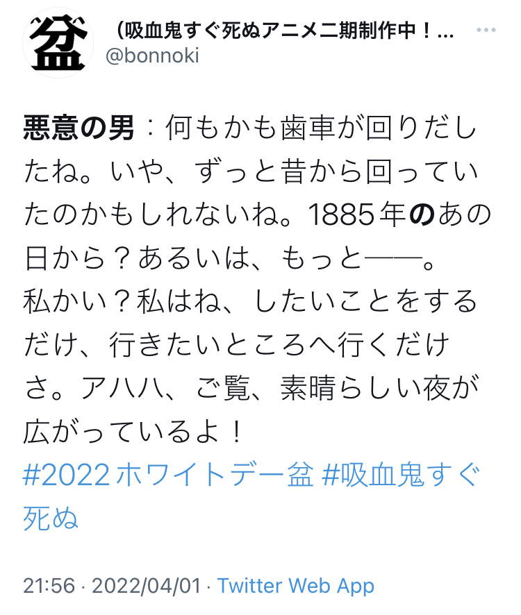 嘘予告では吸血鬼側の裏切り者になっているドラルクの服からひし形が消えていたり、そこらへんは徹底されているから