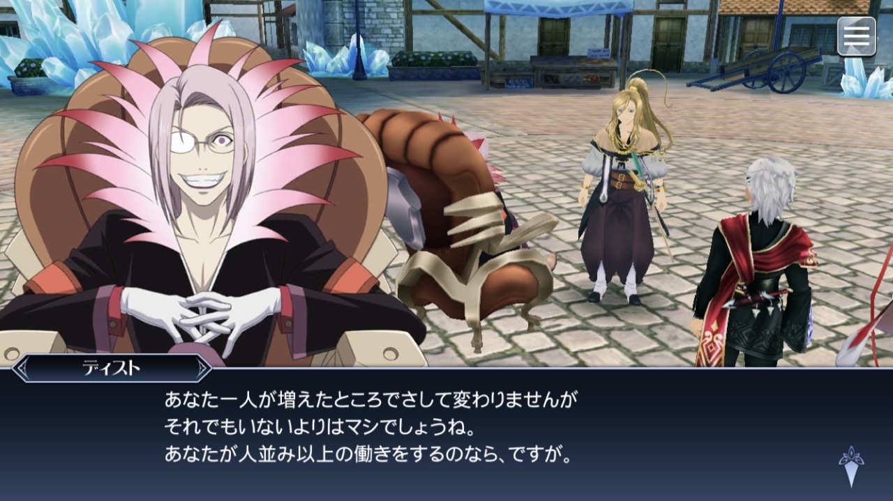 X→ジュードはレイズが体調不良のバーゲンセールで医療班大変そう、ミラは何か意外と天然だなぁって感じでアルヴィンは雰囲気が胡散臭い、他のキャラはあんまり掴めない