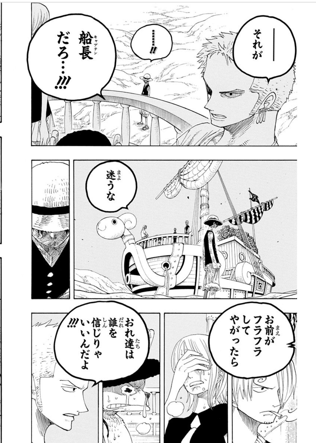 デイビーバックファイトでも泣き喚くチョッパー叱りつけたりと引き締め役やってたがココで一気に副船長の貫禄を出してきたよな