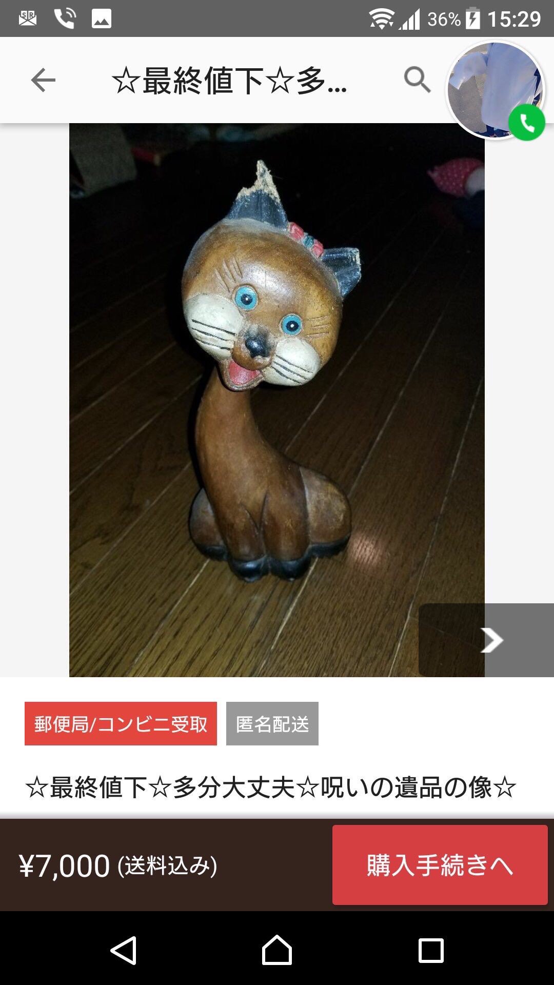 呪いの像がメルカリに出品される