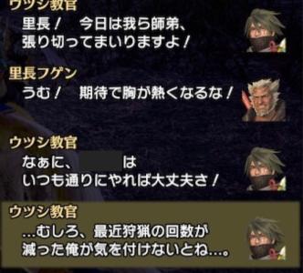 ……しかしですよ里長。私も人間ですので狩猟の途中で万が一……いえ、億が1ということがあるかもしれません。まあ確かにウツシ教官の愛弟子である猛き炎に万が一ということは無いとは思いますがそれでも念には念をいれてもう1人最強のハンターがいたら安心すると思いませんかしますよねそうですよねさすが里長!それで私考えたんですけど最強のハンターとカムラの里最強の教官の子供でしたら猛き炎すらも超える最強のハンターになると思うんですよまあ何が言いたいかと言いますとやはり里長こそがカムラの里の中で一番偉いわけでして、その里長が命じたとあらばもちろん命令に従いますし私も吝かではないと言いますかまあちょっとフクズクちゃんとは仲があまり良くないみたいですけどきっとわかってくれますしああそういえば私もご存知の通りお年頃でしてそろそろ恋の1つや2つあってもいいのではないかと思いますしカムラの里で最も優秀なハンターを育成した教官が安心して帰れるような家庭があっても私はいいと思いますいえあるべきですプライベートが充実することで新米のハンターの育成にもより力を入れられるはずですしまあただ私もそうなったならすこーしだけちょっと暇をいただきたいなぁとも思ったり……いえ、婚前の交渉はやはり私もやや抵抗があるのですが二人の男女が屋根の下とあらば何も起きない可能性はゼロではないので念の為ですよまあ私はこれ以上なく信頼していますが男というのはルナガロンと聞いたことがありますのでしっかりと覚悟して挑ませていただく予定です!