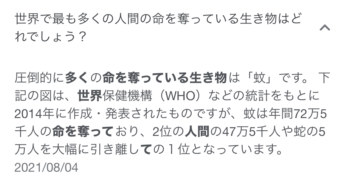 蚊って一番人間を殺してる生物だぞ - 24二次元好きの匿名さん22/07/14(木) 22:55:35