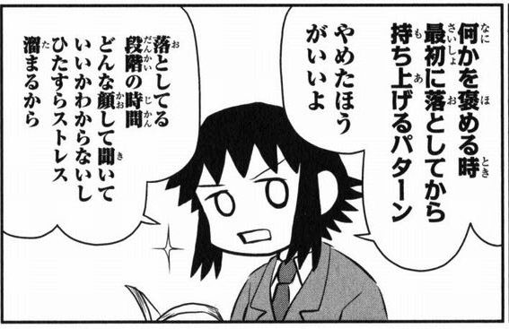 「何かを誉める時に最初に落としてから持ち上げる」