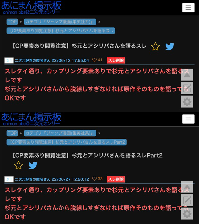 あにまん掲示板で杉元とアシリパさんについて穏やかに語れる場が欲しくてスレを建てました