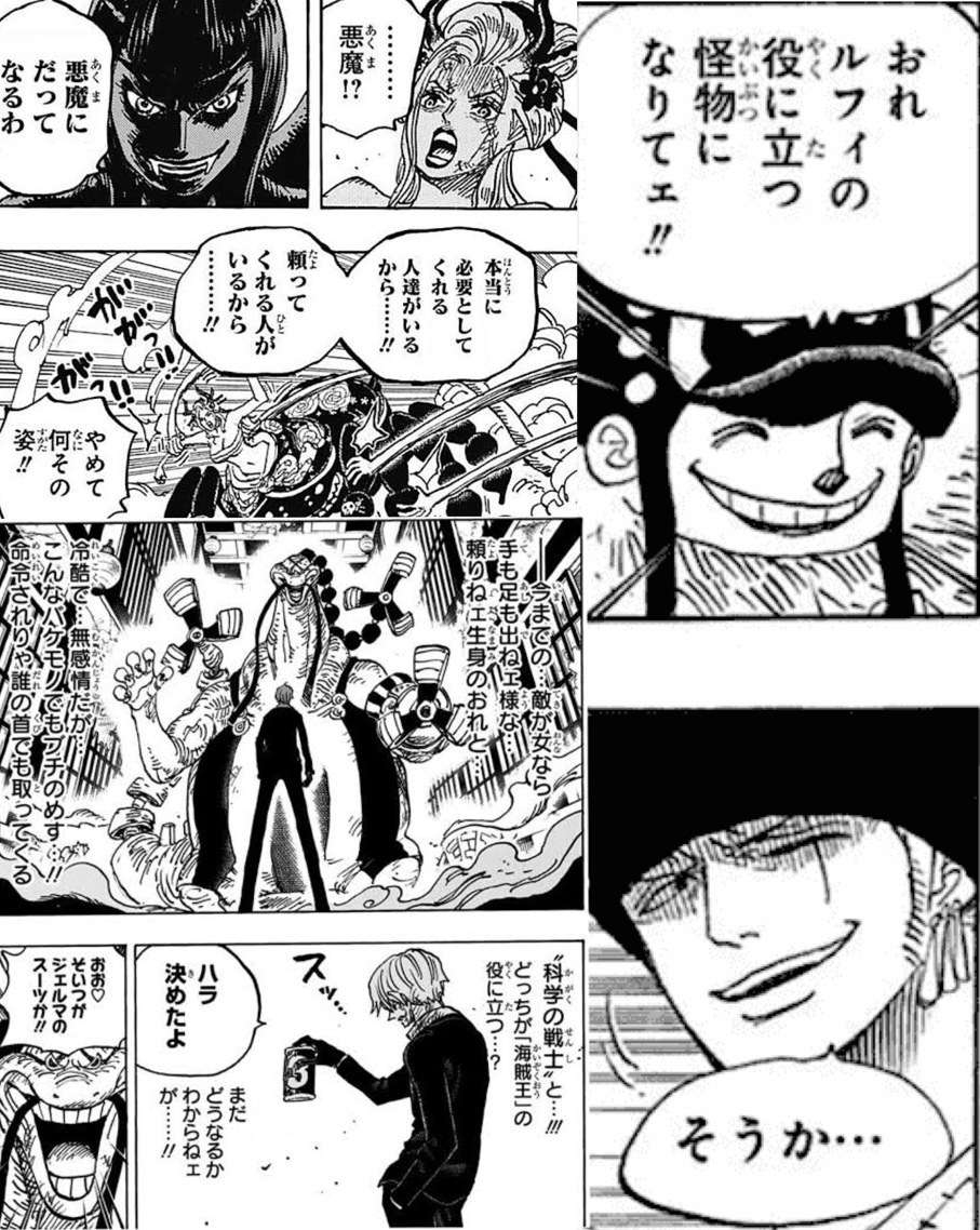 ところで麦わら3強の組み合わせ好きなんだけど、ワノ国編で両翼やこのトリオ意識した描写盛りだくさんで嬉しかった