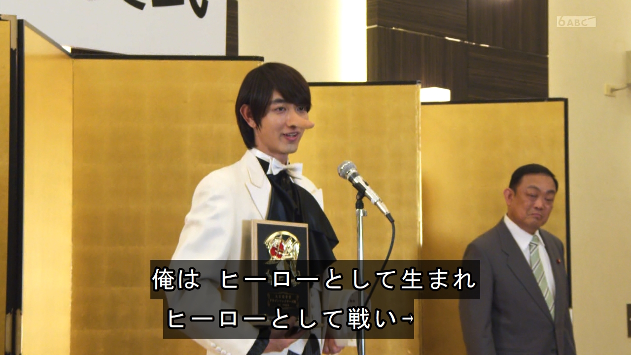 「俺はヒーローとして生まれ、ヒーローとして生き、ヒーローであり続ける」(……あれ、俺、今良いこと言ったな?)とかで大臣賞も同じこと言ったとかなら笑う。これまでに何度も同じ問答をしてきたとかでもおいしい。