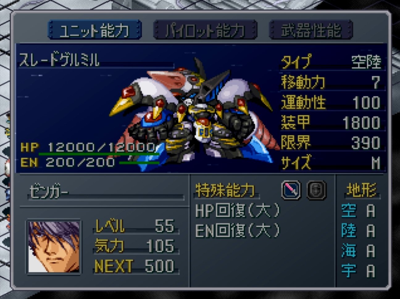 第二次OGsでエクサエランス・レスキューが出たり、エンディングで“リ・テクの機体はシュンパティアやレース・アルカーナがヤバいから封印措置を取る”みたいな話が出ていたから、続編では(ジョッシュやリムは合流当初はゲシュペンストとかリオン・シリーズの改修機に乗ってきて、中盤でピンチになったら搭乗者の危機に反応したジェアンやブランシュネージュが勝手に起動して乗り替わりイベかな…)みたいに思っていたら、ムーン・デュエラーズで割と序盤からジョッシュたちがジェアンとかに乗ってきてズッコケたのが俺なんだよね。