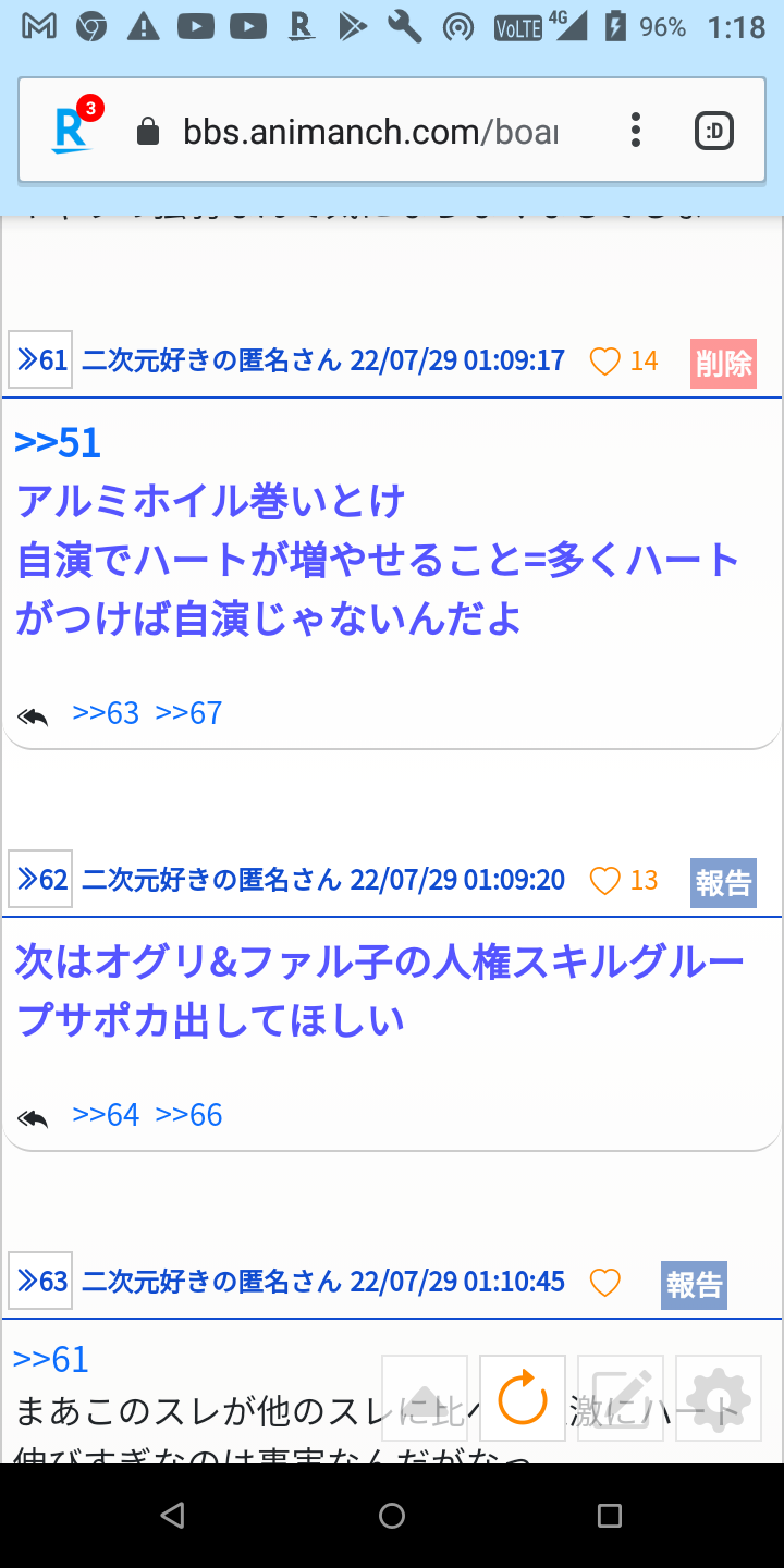 自演スレ指摘派と反論派のハート数合わせると30人は存在してることになる人気スレなの草生えますね