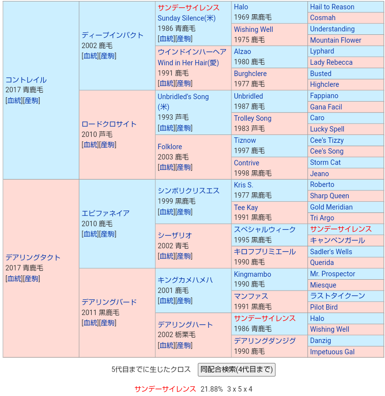 コンタクト配合はディープキンカメエピファが入っててサンデーも濃いという日本競馬の終着点だけど、タイホタクトはキンカメが濃い代わりにディープ入ってないからギリOK