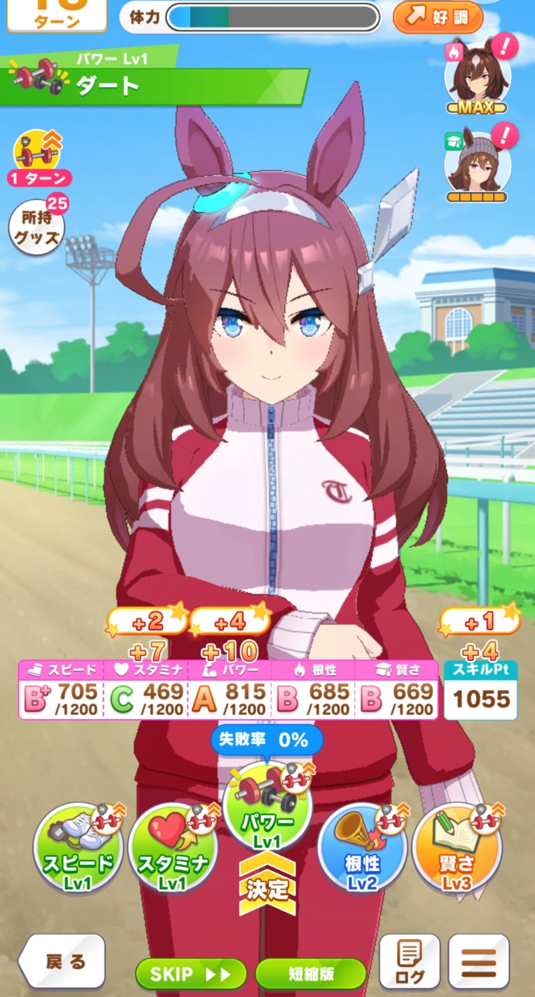 ナカヤマのケガ率0判定は週明けに行われるみたいっスね、ホイッスル1ターンに何回吹いてもケガ率変動しないかったのん