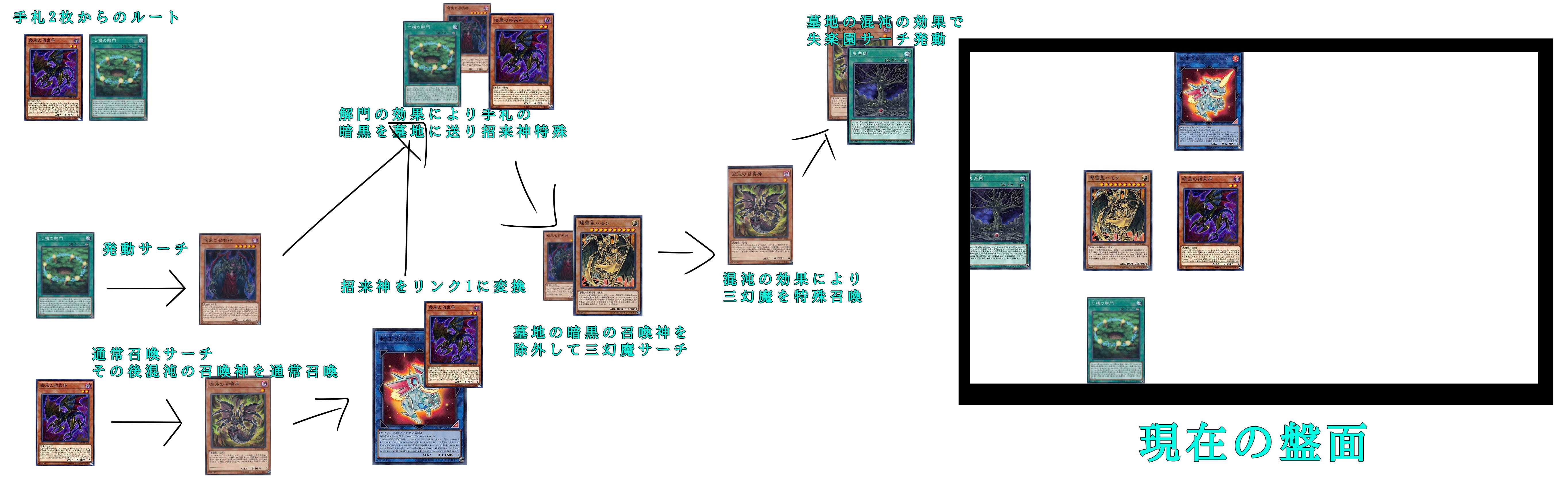 混沌はリリースして手札の幻魔を出す。そして失楽園っていう幻魔のほぼ必須カードをサーチできる。