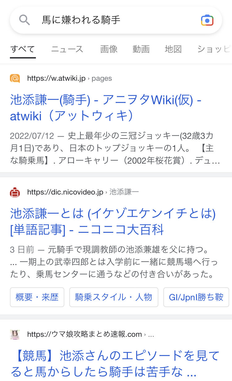 特定個人が嫌いな馬(例:メジロマックイーン)は稀で、池添は嫌われてるというか人嫌いに乗ってる場合があるので…