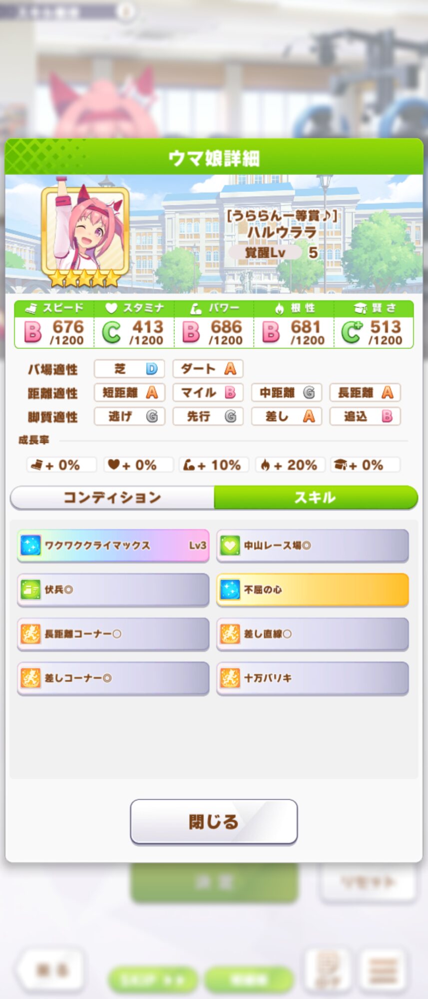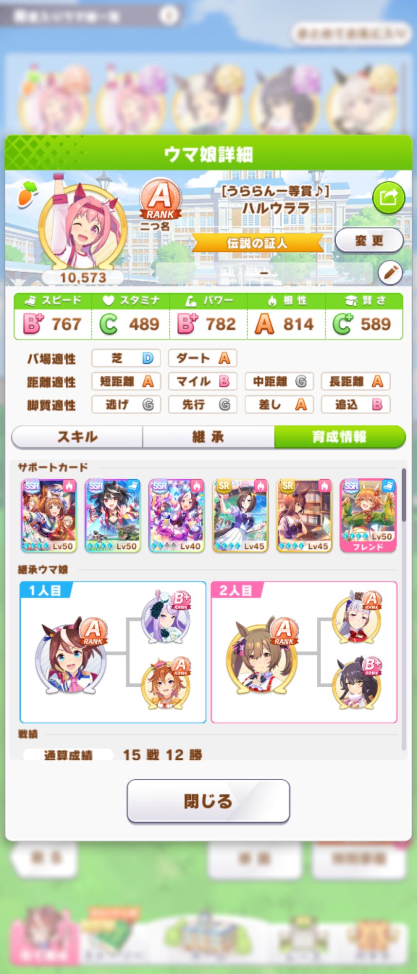 スタミナが399で危ないかと思ったけど、長距離Aと追い比べで勝った