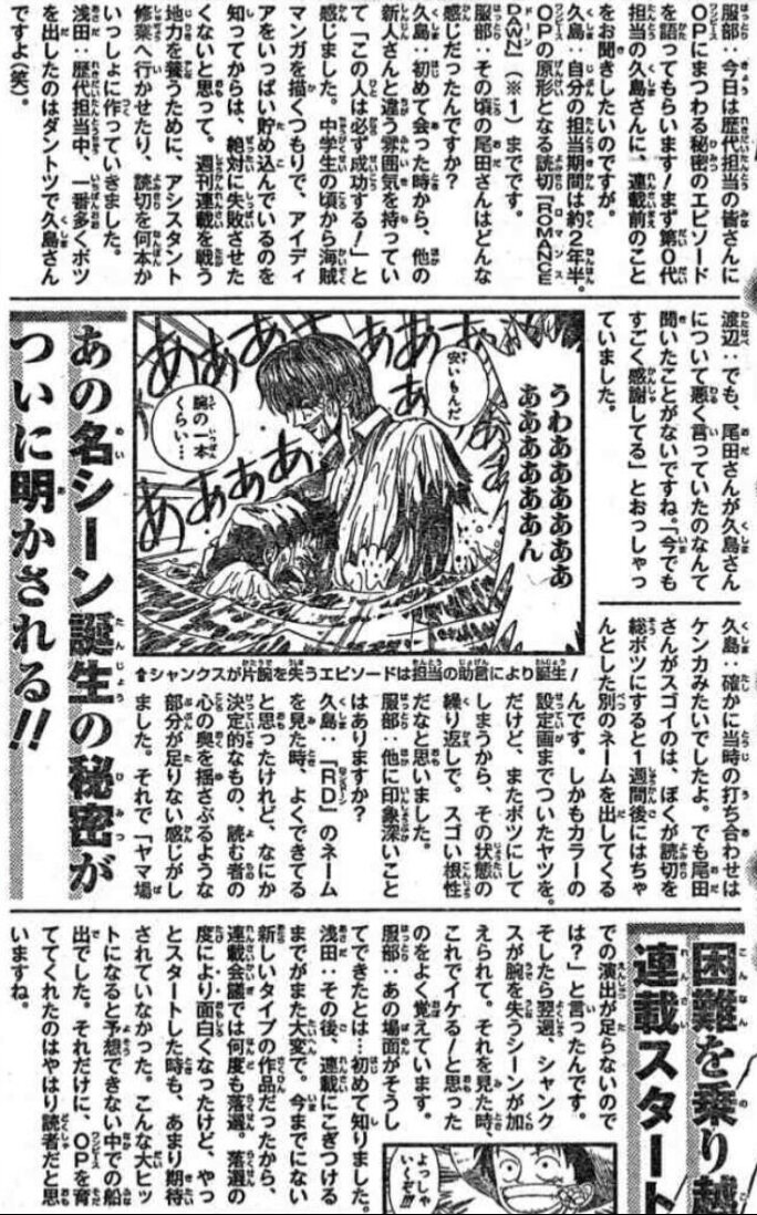 インタビュー内で尾田先生が「第1羽でいちばん大事なシーンは何かといえば」って言って挙げてるのがこのシーンだからってことなんだろうけど、実際は尾田先生は冗談半分だろうな