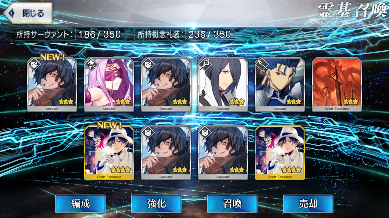 いつぞやの福袋で不夜城のキャスターとマーリンが出たときがMAXだった