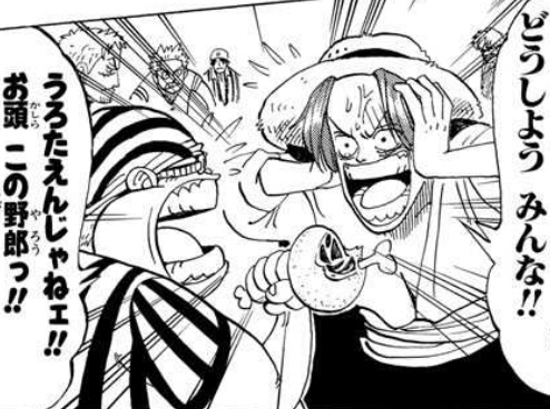 バギーの部下『相変わらずあの赤髪のシャンクスにタメ口を………うおおおおおおお俺達のキャプテン・バギー!一生ついていきます!!』