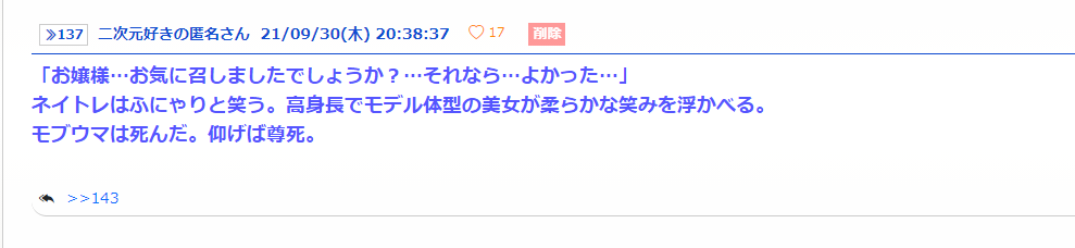 - 14二次元好きの匿名さん21/10/09(土) 10:30:58