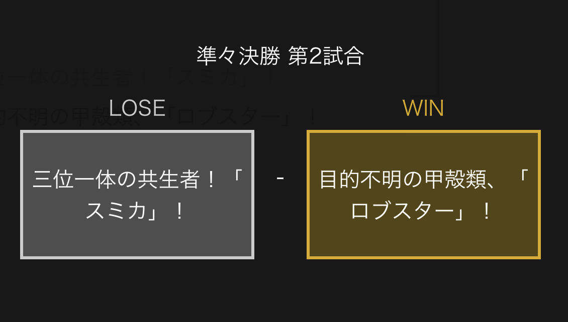 お互いに一撃では倒せない以上回復持ちでタイムが途切れないロブスターが有利だと思うもん