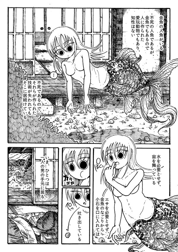 人魚の下半身って普通は魚の下半身なのに金魚の人魚の下半身は人間の下半身を咥えTEる金魚みたいな下半身なのがセンスだなあと思いました
